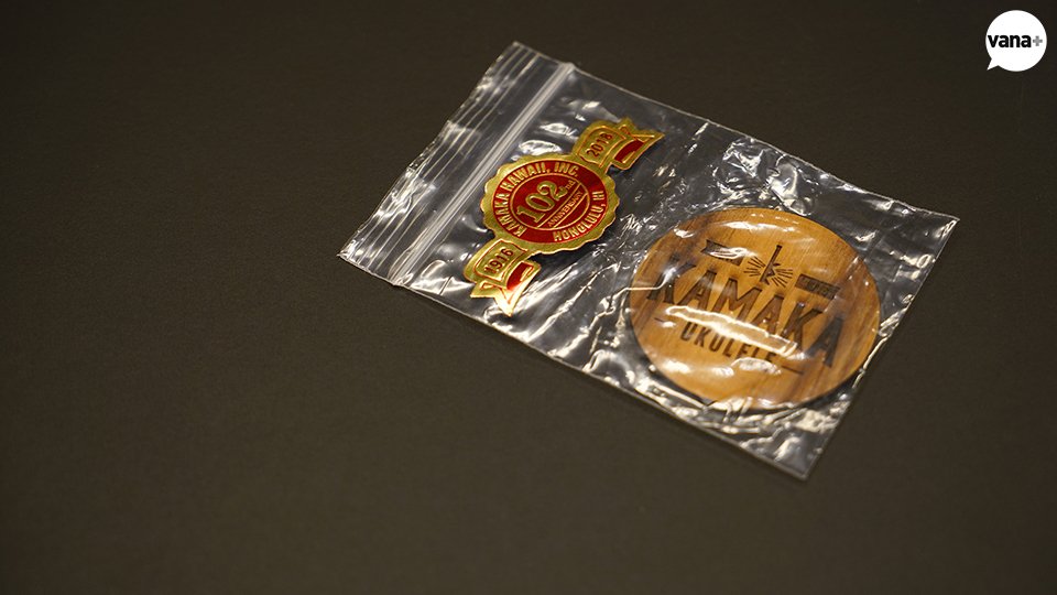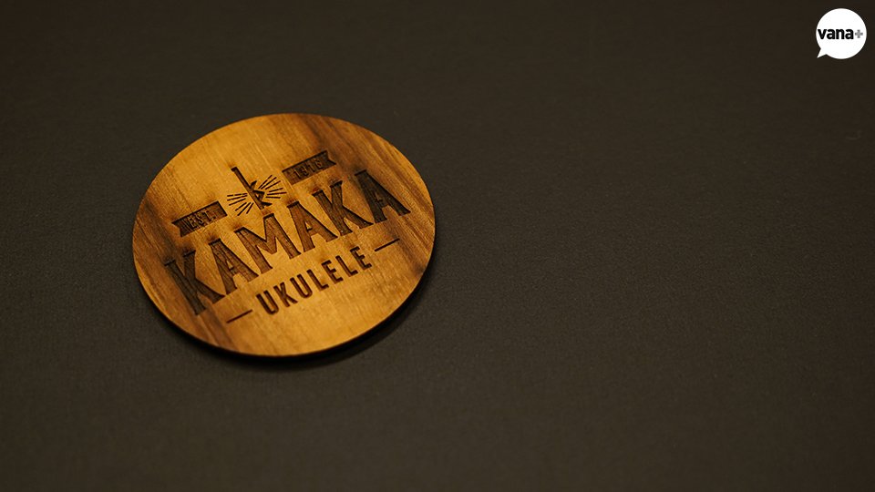 사운드 홀을 뚫고 난 조각에 카마카 로고를 새기고 뒷면에 작은 자석을 붙여 기념품으로 제공한다.
