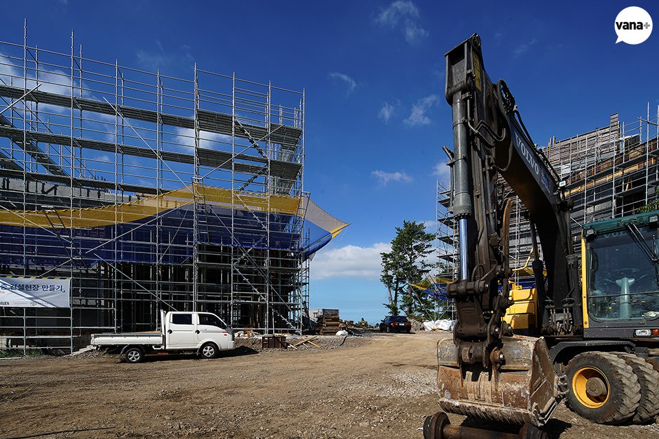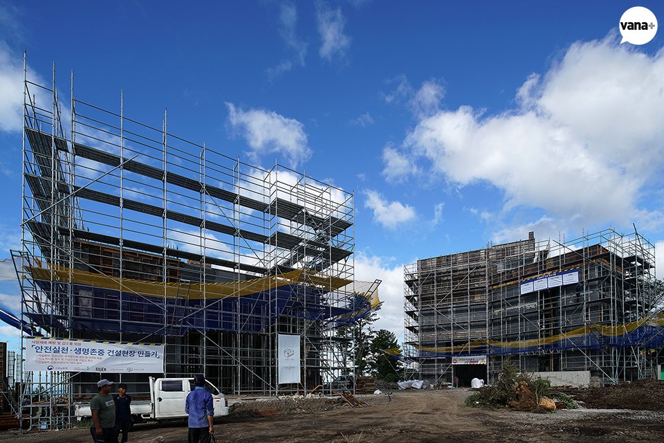 갤러리 두 동이 동시에 올라가고 있는 현장.