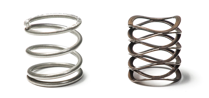 (L) Conventional wire wound spring / (R) Wave spring for HIKU