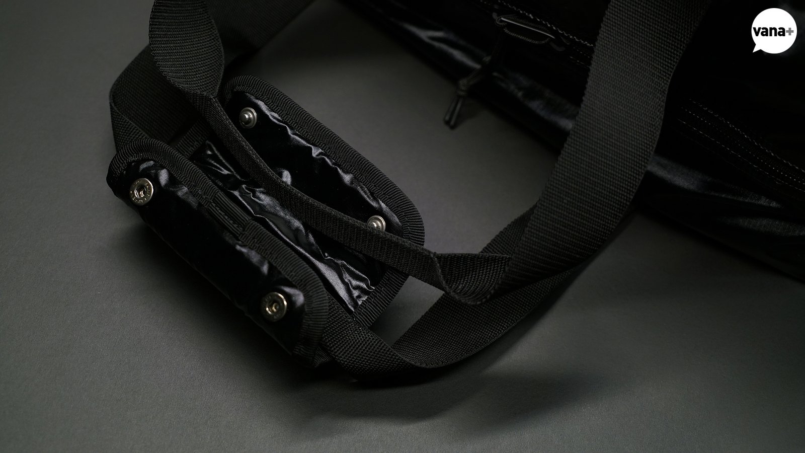 길이 20cm가 조금 넘는 정도로 적당한 길이의 스트랩과 그 스트랩들의 핸들 부분을 감싸 묶을 수 있는 버튼이 달려있어 들었을 때 손도 굉장히 편하다.