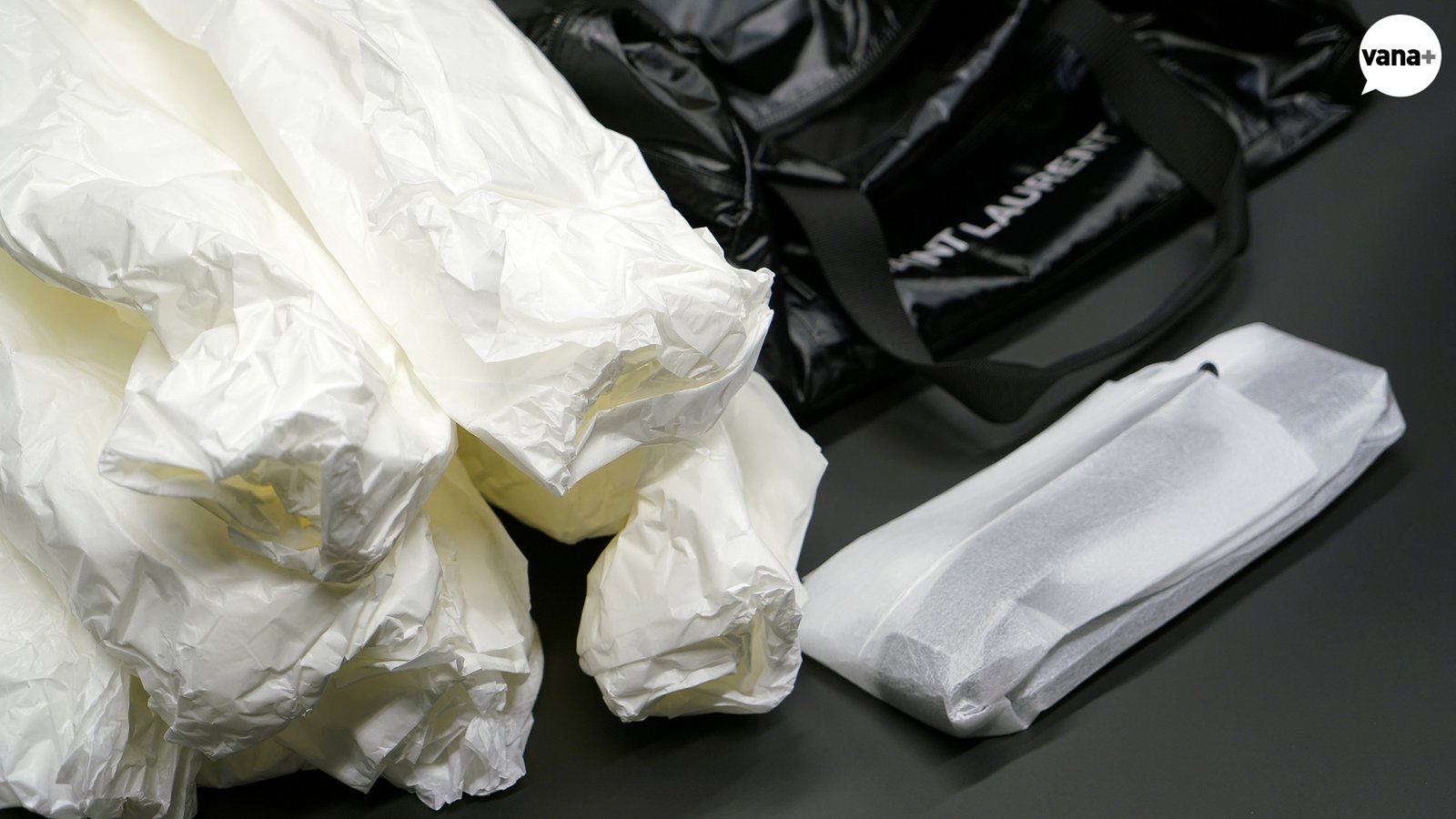 안쪽에는 가방 모양을 잡아주는 종이뭉치 잔뜩과 잘 쓸 것 같지 않은 숄더 스트랩이 들어있었다.