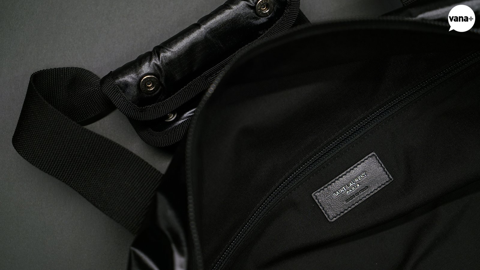 옆쪽 외부 포켓에는 시크하게 SAINT LAURENT 라는 로고 프린트가 되어있다.