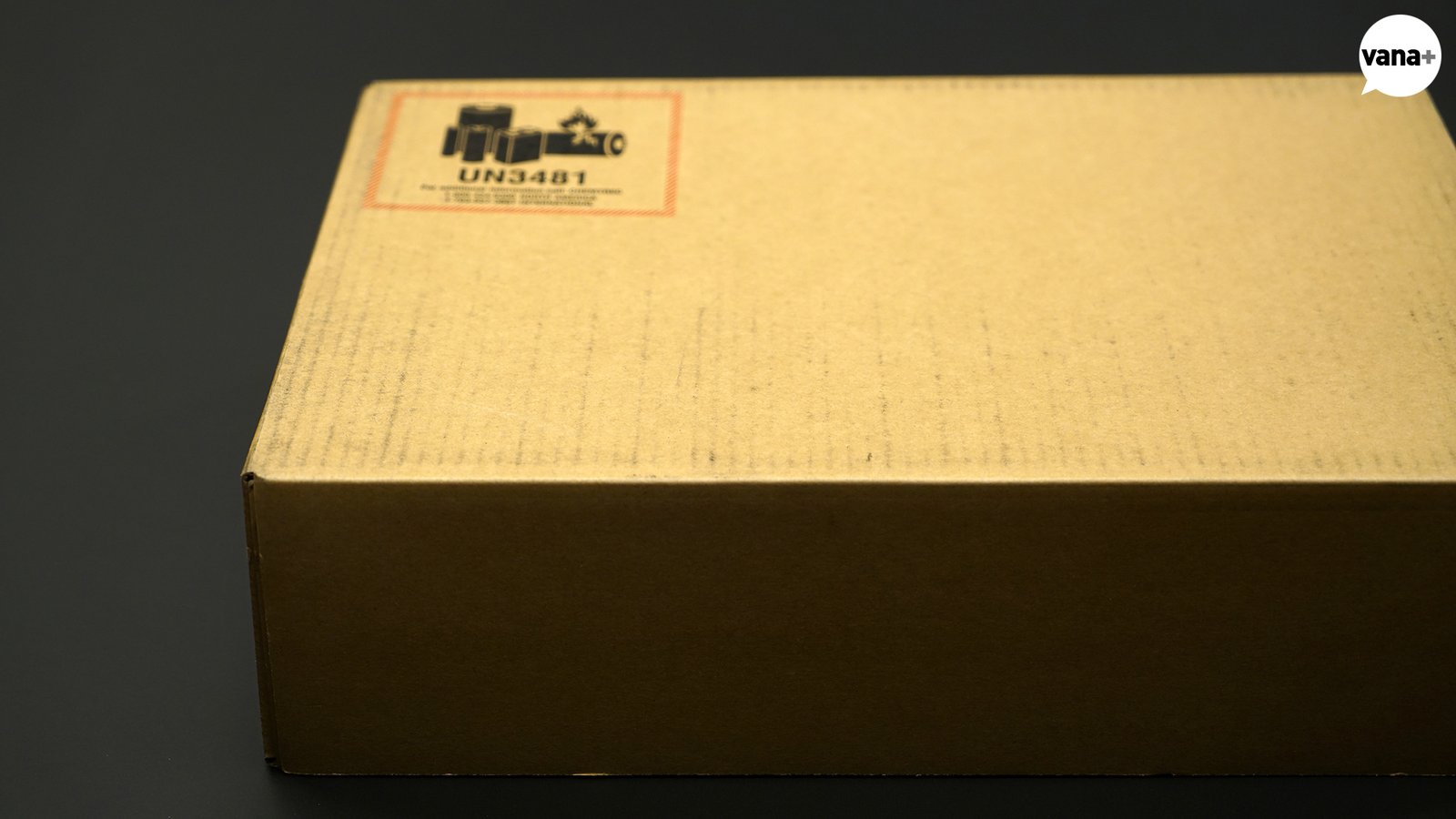 리튬 이온 배터리가 기계에 장착된 채 운송되는 걸 알리는 “UN3481” 라벨이 인쇄된 아웃 패키지.