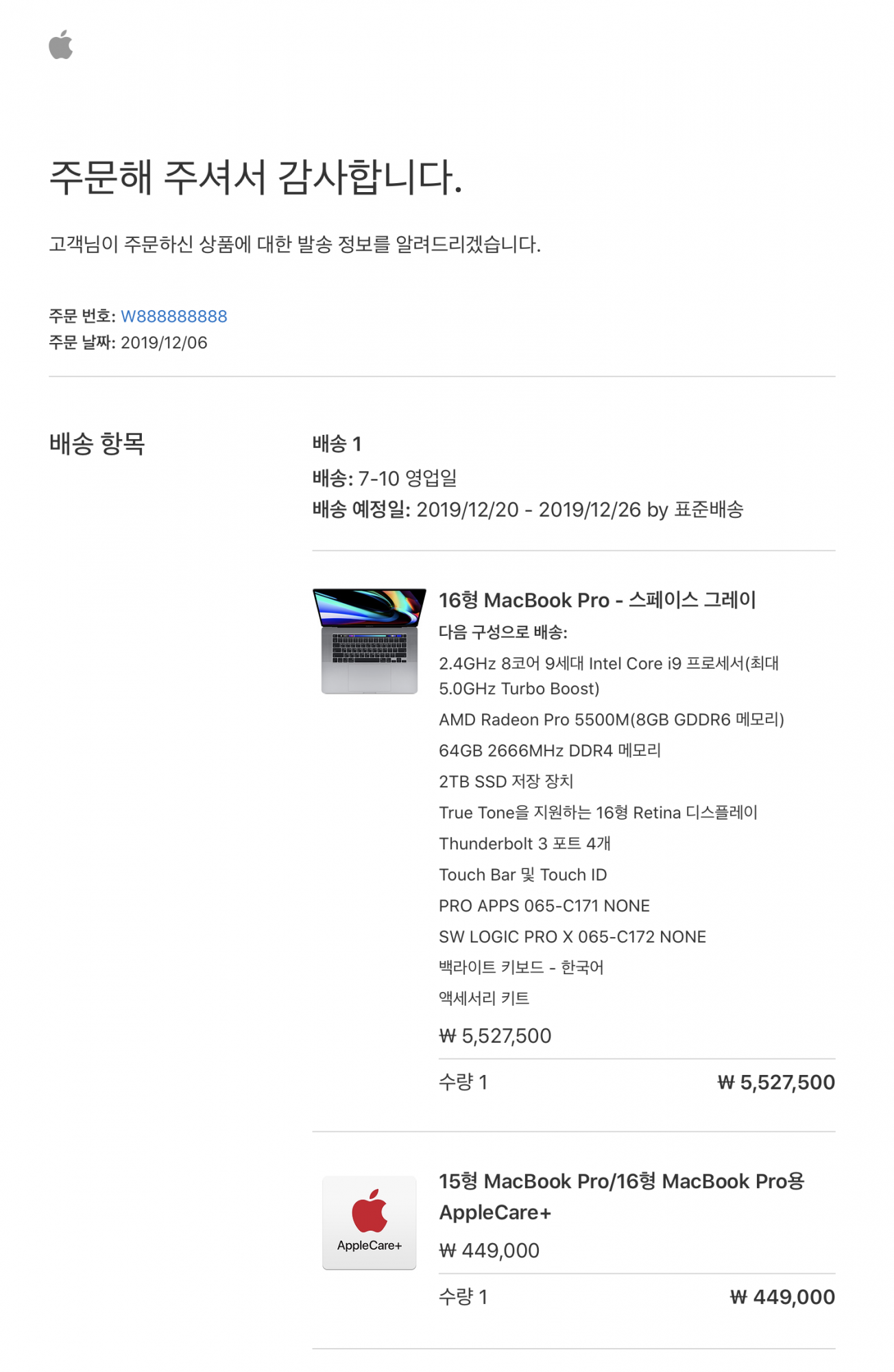 AppleCare+ 주문을 깜빡해서 취소하고 다시 주문을 하느라 조금 늦었지만 아마 국내 몇 손가락 안에 들 정도로 빠른 주문을 했을 듯.