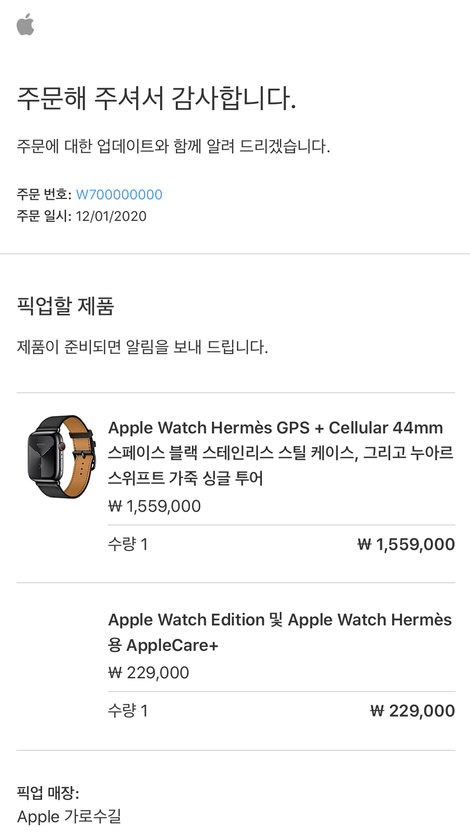배송 주문이 아예 안되어서 귀찮지만 픽업 예약 후 가로수길 애플스토어에 가서 찾아왔다.