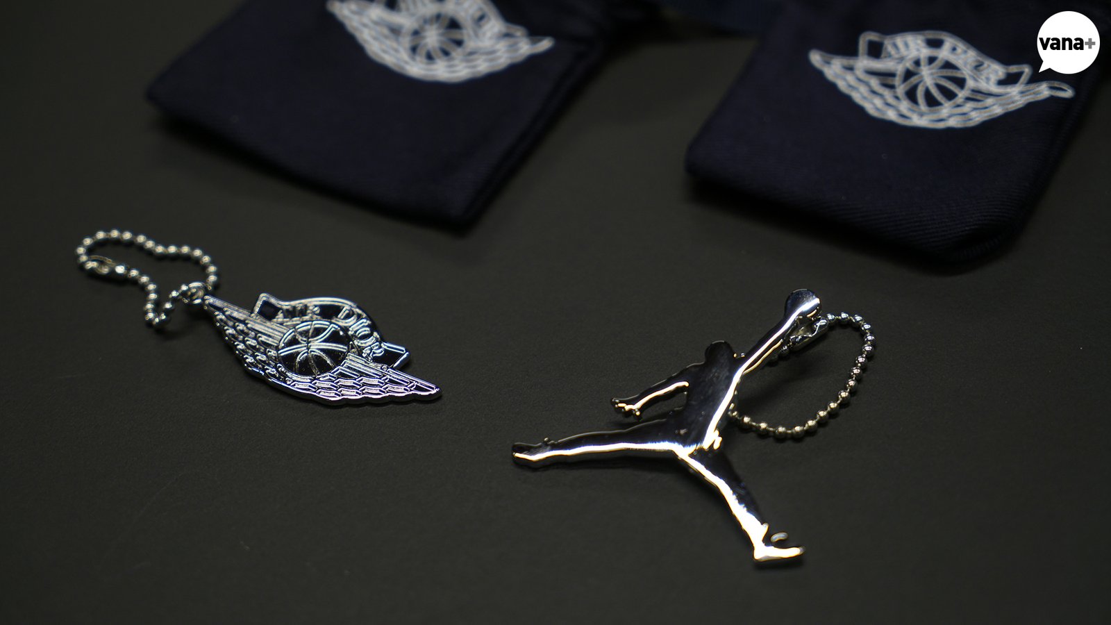 볼 체인 타입으로 만들어진 AIR DIOR 로고와 Air Jordan 로고가 각각 하나씩.