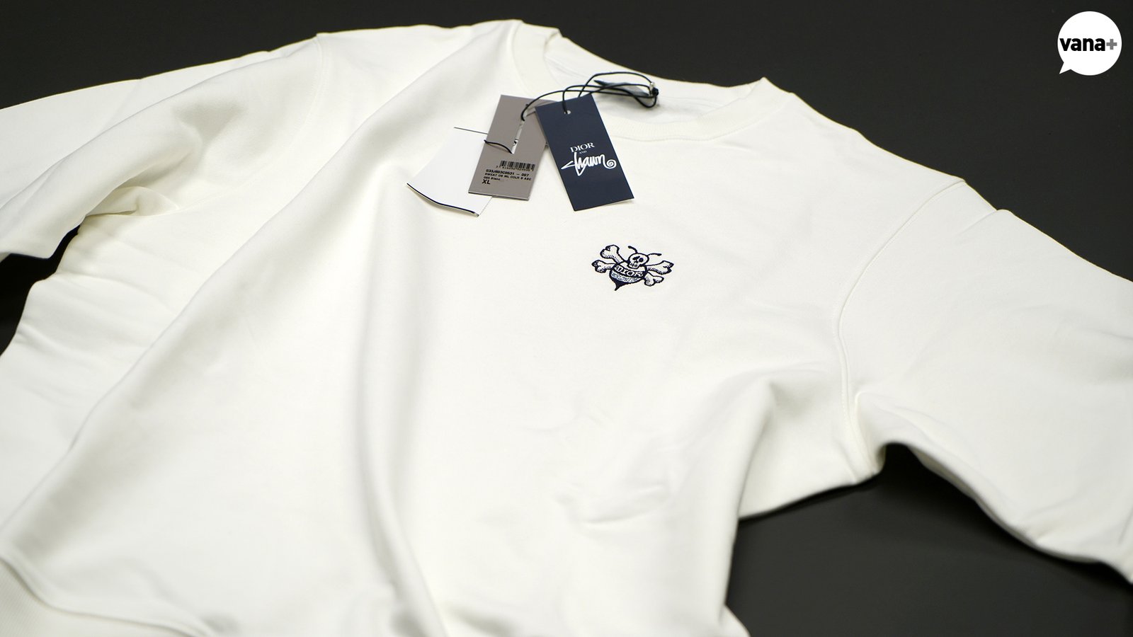 디올의 시그니처 꿀벌 이미지에 스컬을 더해 익살맞게 재해석한 이미지가 가슴팍에 자수로 새겨진 스웻셔츠.