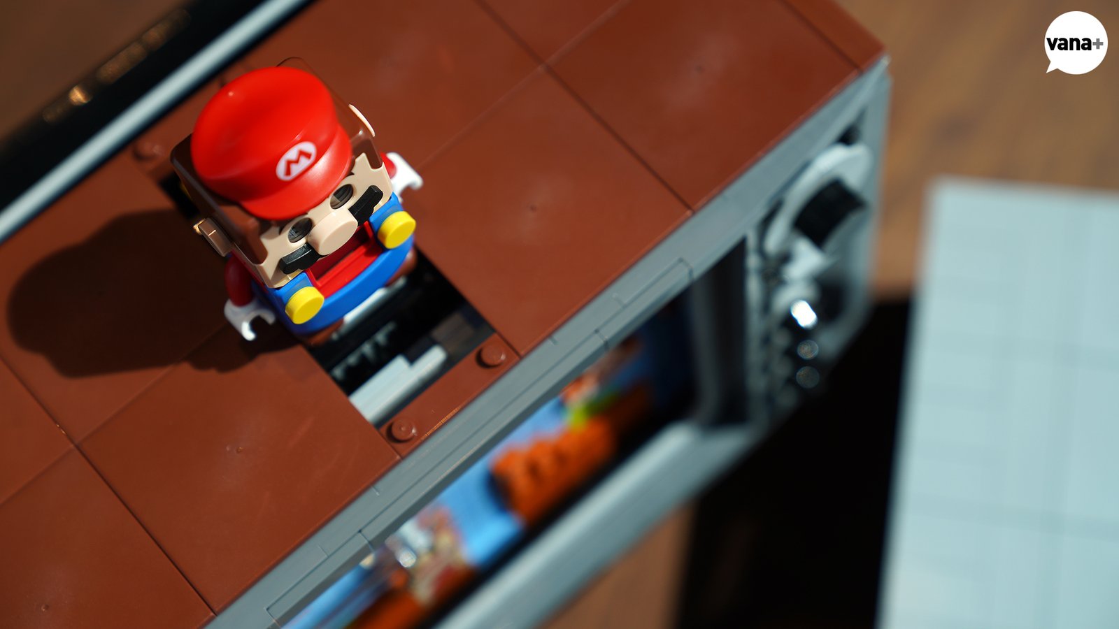 RCA 단자가 위치한 부분의 상부 한 쪽 면을 열어보면 슈퍼마리오 스테이지를 작은 부품으로 꾸며두었다.
