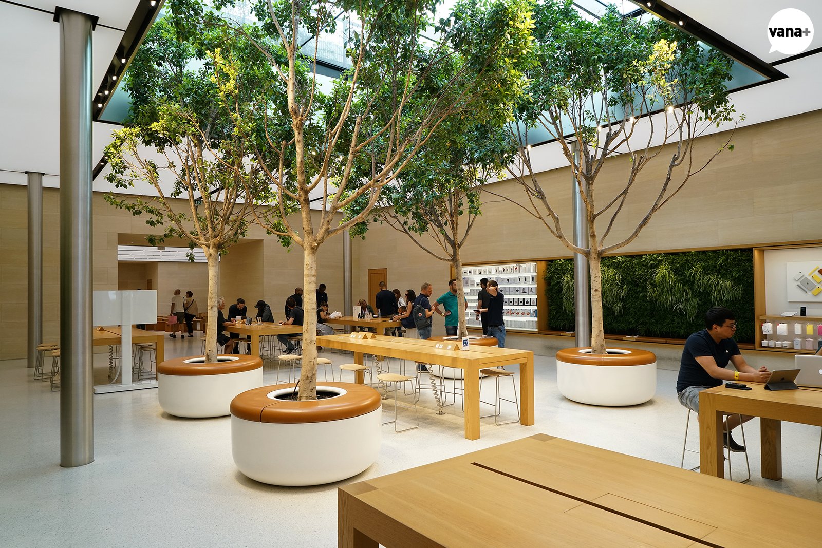 자연광이 가득한 실내에 큼지막한 나무가 가득 심어져 있는 애플스토어라니.
