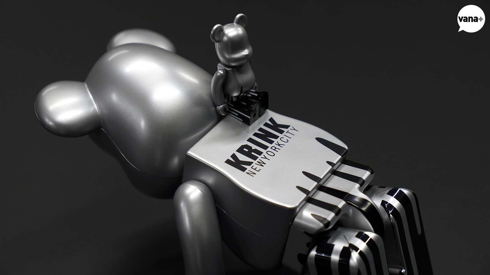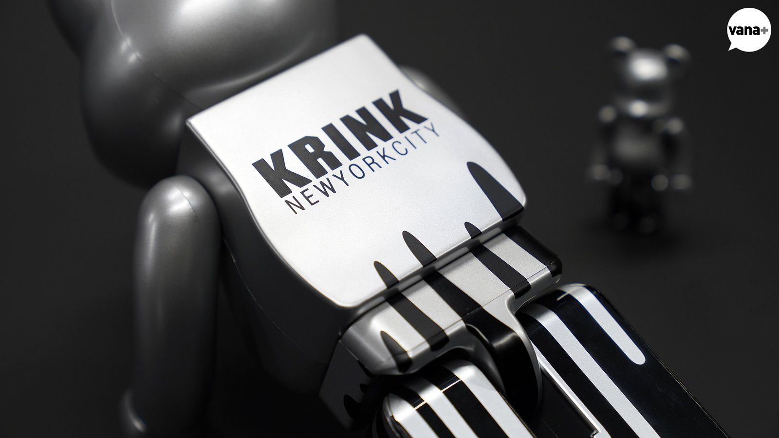 베어브릭 전체가 KRINK의 시그니처 컬러라고 할 수 있는 실버 컬러이며 그 실버 컬러 잉크가 아래쪽으로 흘러내린 모습인데,